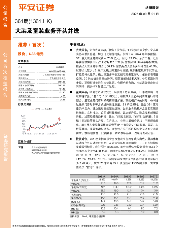 【平安证券】【202509】361度(1361.HK)大装及童装业务齐头并进-18页 证券期货研究报告