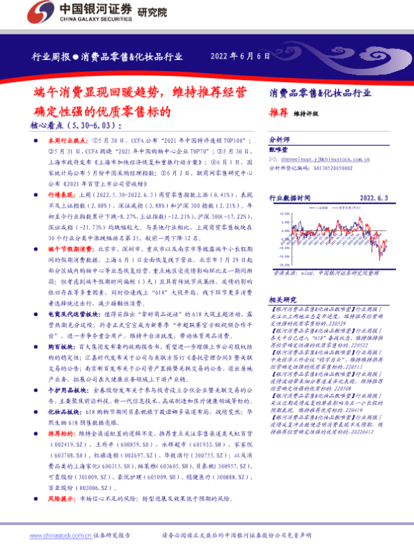 【银河证券】【20220606】消费品零售&化妆品行业周报:端午消费显现回暖趋势,维持推荐经营确定性强的优质零售标的-31页 行业研究