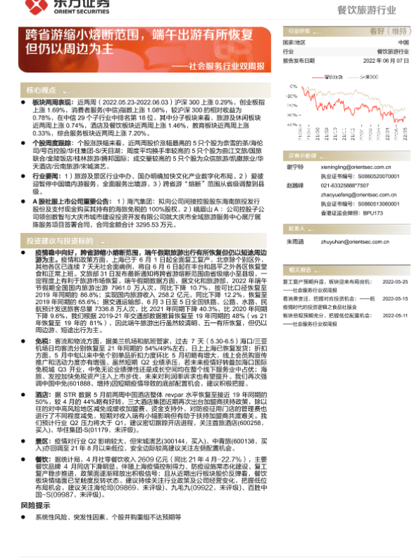 【东方证券】【20220607】社会服务行业双周报:跨省游缩小熔断范围,端午出游有所恢复但仍以周边为主-12页 行业研究