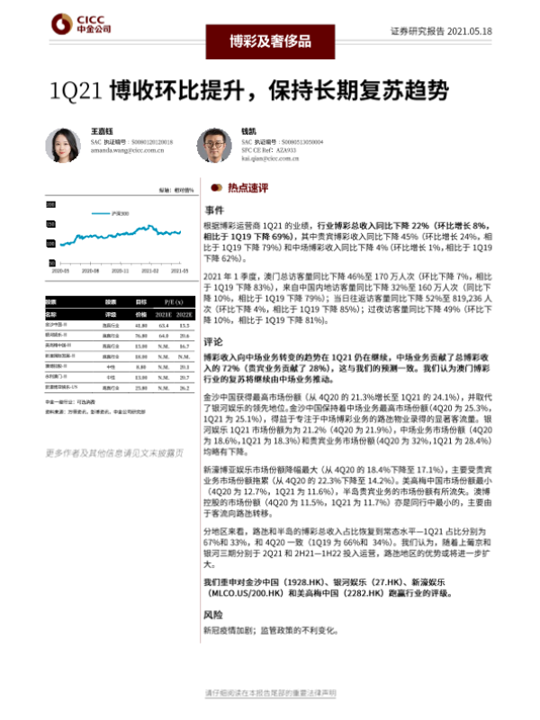 【中金公司】【20210518】博彩及奢侈品:1Q21博收环比提升,保持长期复苏趋势-12页 行业研究