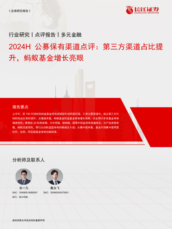 【长江证券】【20240918】2024H公募保有渠道点评:第三方渠道占比提升,蚂蚁基金增长亮眼-12页 行业研究
