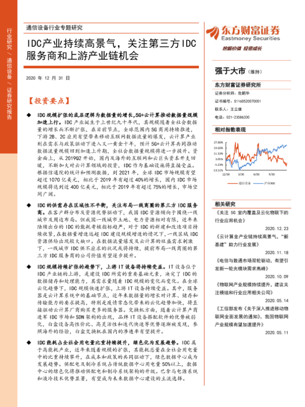 【东方财富证券】【20201231】通信设备行业专题研究:IDC产业持续高景气,关注第三方IDC服务商和上游产业链机会-37页 行业研究