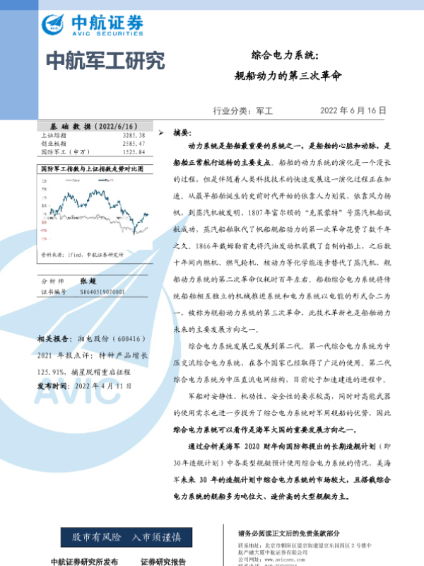 【中航证券】【20220616】综合电力系统:舰船动力的第三次革命-32页 行业研究