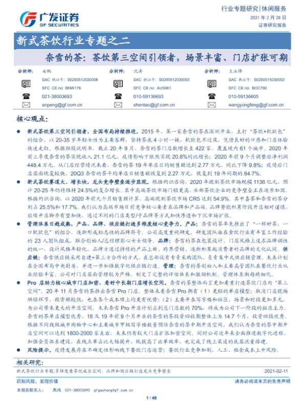 【广发证券】【20210228】新式茶饮行业专题之二:奈雪的茶:茶饮第三空间引领者,场景丰富、门店扩张可期-48页 行业研究