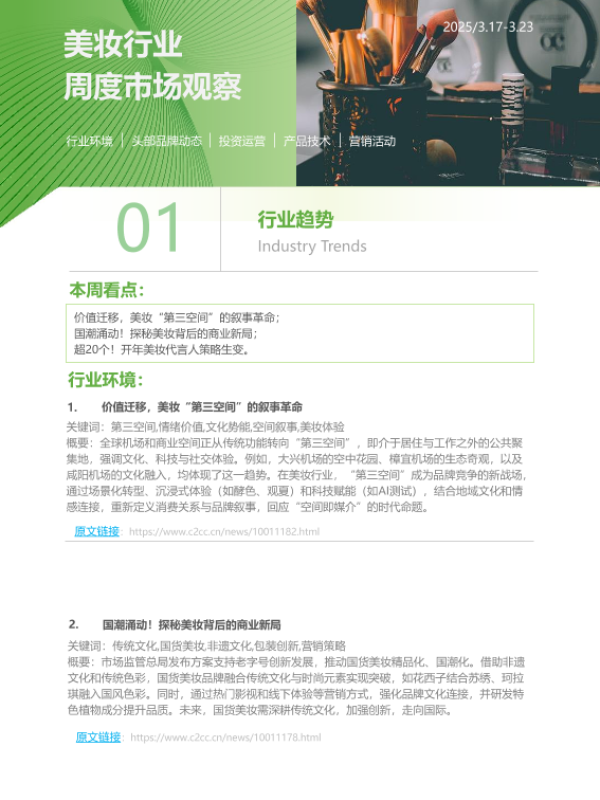 【艾瑞咨询】【20250317】iR-2025年第13周-美妆行业周度市场观察-6页 市场调研