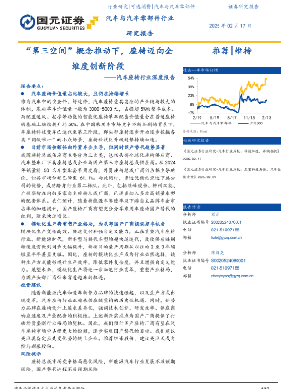 【国元证券】【20250217】“第三空间”概念推动下,座椅迈向全维度创新阶段——汽车座椅行业深度报告-17页 行业研究