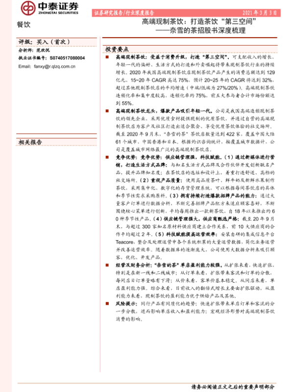 【中泰证券】【20210303】高端现制茶饮:打造茶饮“第三空间”-23页 行业研究