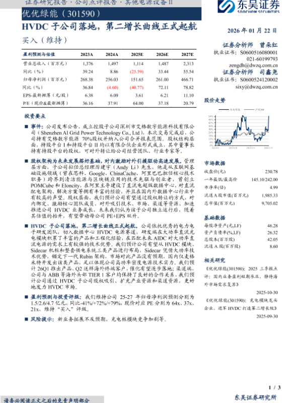 【东吴证券】【202601】HVDC子公司落地,第二增长曲线正式起航-3页 证券期货研究报告