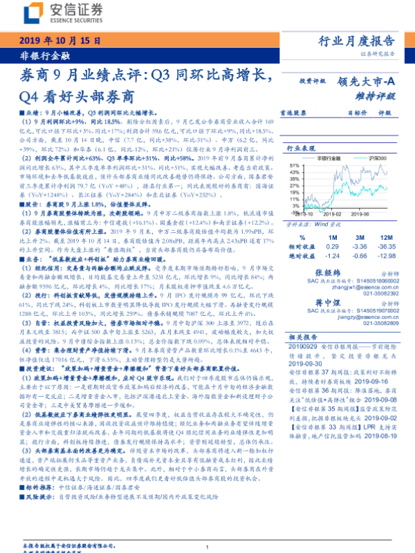 【安信证券】【20191015】券商9月业绩点评:Q3同环比高增长,Q4看好头部券商-9页 行业研究