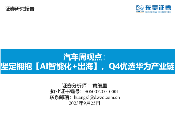 【东吴证券】【20230925】汽车周观点:坚定拥抱【AI智能化+出海】,Q4优选华为产业链-31页 行业研究