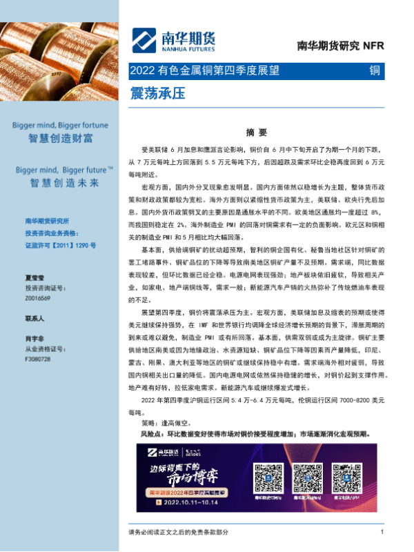 【南华期货】【20220930】2022有色金属铜第四季度展望:震荡承压-16页 行业研究