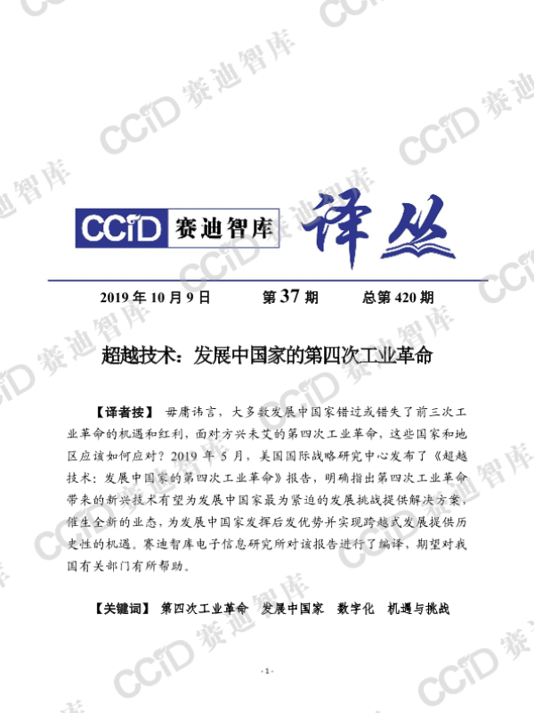 【美国国际战略研究中心】【2019】超越技术:发展中国家的第四次工业革命-23页 行业研究