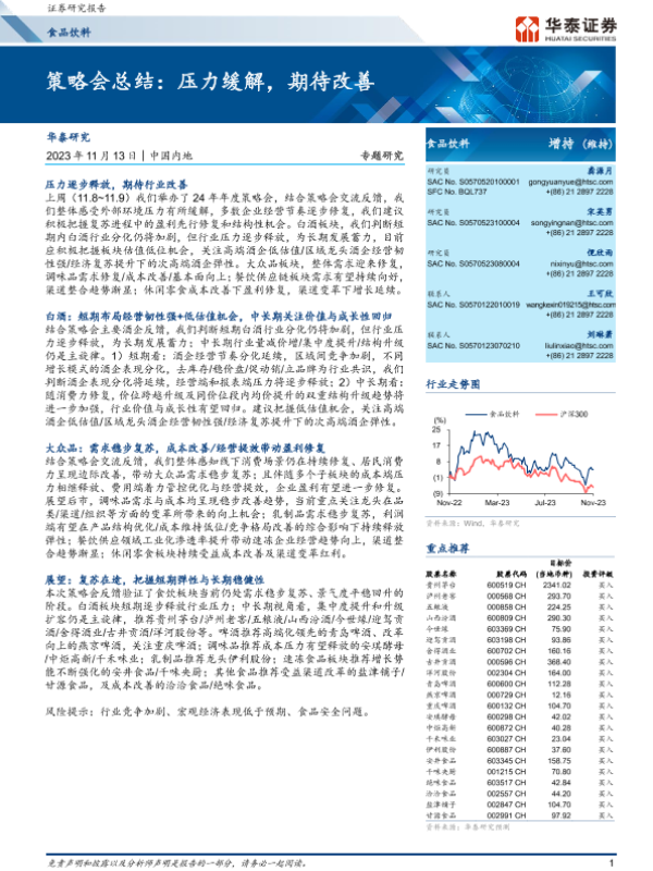 【华泰证券】【20231113】食品饮料:策略会总结:压力缓解,期待改善-15页 行业研究