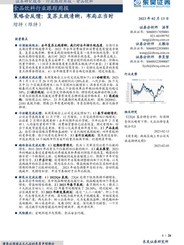 【东吴证券】【20230213】20230213-东吴证券-食品饮料行业跟踪周报:策略会反馈:复苏主线清晰,布局正当时-28页 行业研究