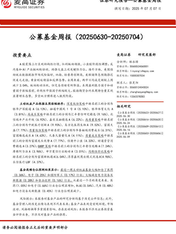【麦高证券】【20250707】公募基金周报-17页 证券期货研究报告