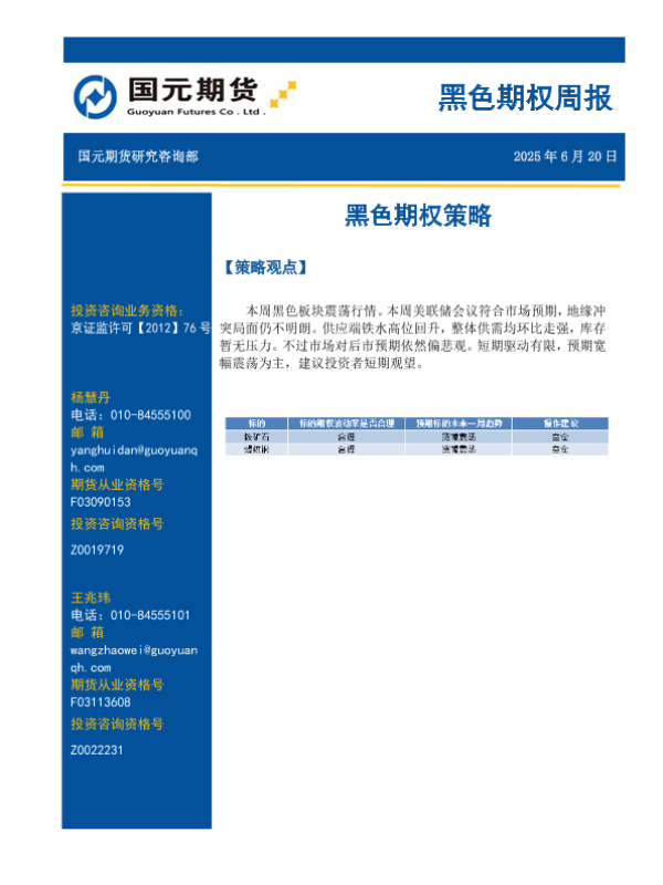 【国元期货】【20250620】黑色期权周报_黑色期权策略-14页 证券期货研究报告