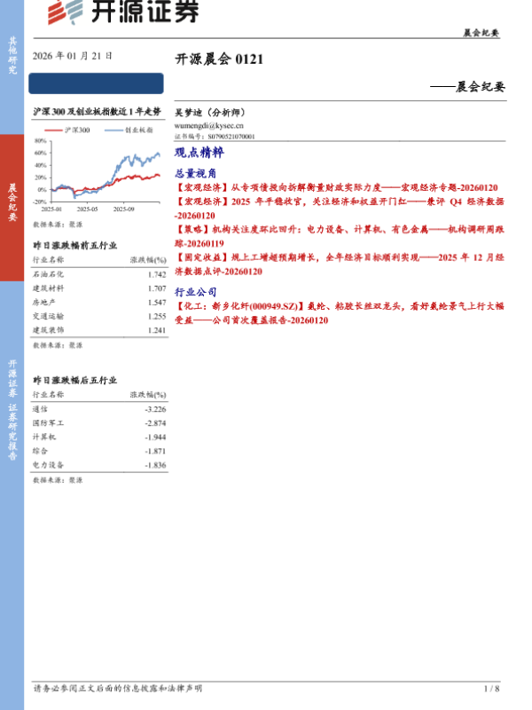 【开源证券】【202601】开源晨会-8页 会议纪要