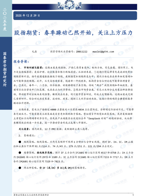 【国泰君安期货】【202512】股指期货:春季躁动已然开始,关注上方压力-8页 证券期货研究报告