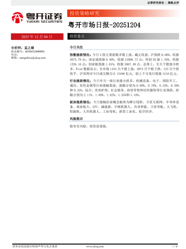 【粤开证券】【202512】粤开市场日报-20251204-6页 证券期货研究报告
