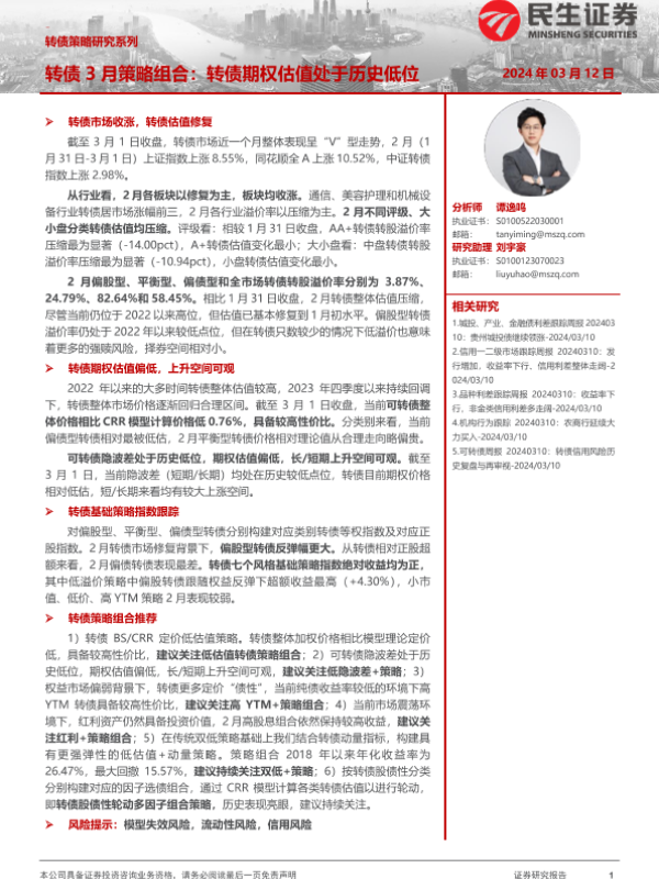 【民生证券】【20240312】转债3月策略组合:转债期权估值处于历史低位-16页 行业研究