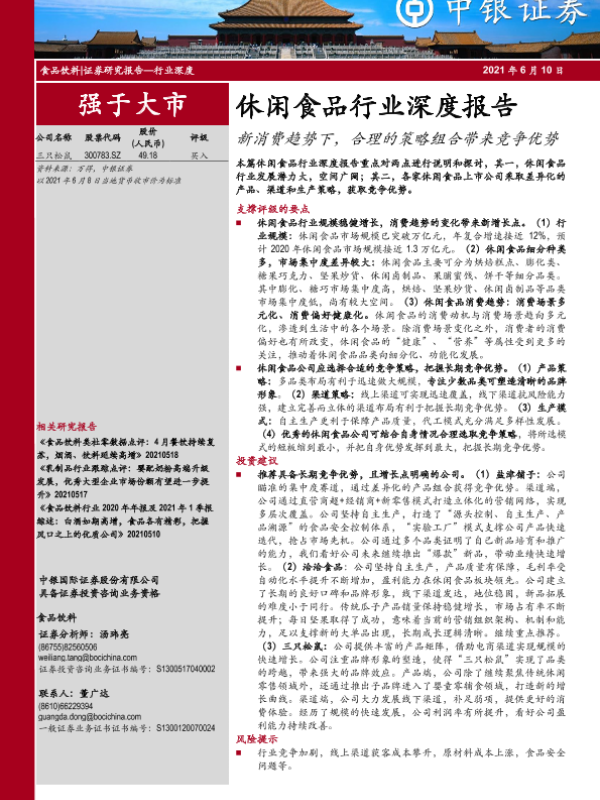 【中银证券】【20210610】20210610-中银证券-休闲食品行业深度报告:新消费趋势下,合理的策略组合带来竞争优势-33页 行业研究