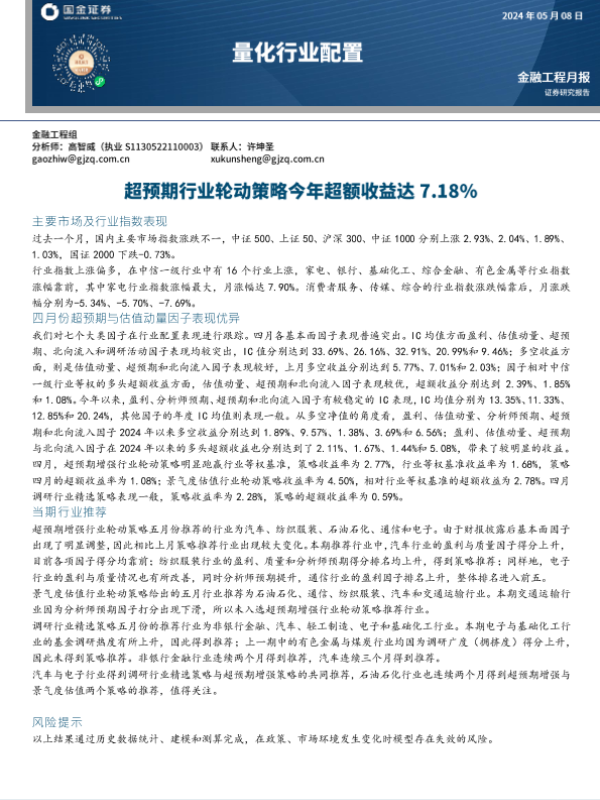 【国金证券】【20240508】量化行业配置:超预期行业轮动策略今年超额收益达7.18%-12页 行业研究