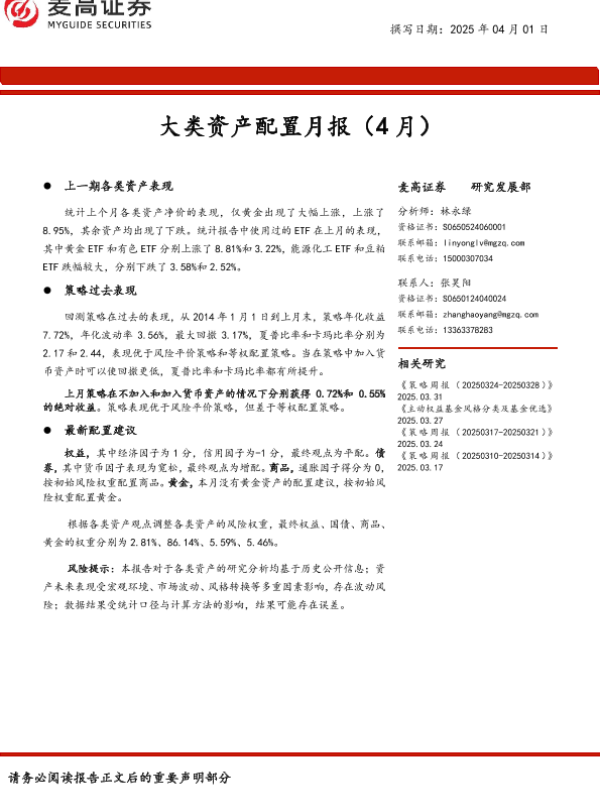 【麦高证券】【20250401】大类资产配置月报(4月)-11页 证券期货研究报告