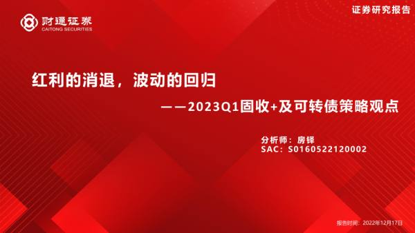 【财通证券】【20221217】2023Q1固收+及可转债策略观点:红利的消退,波动的回归-30页 行业研究