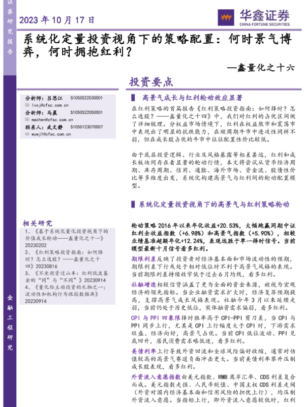 【华鑫证券】【20231017】系统化定量投资视角下的策略配置:何时景气博弈,何时拥抱红利?-21页 行业研究