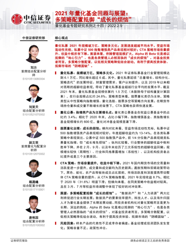 【中信证券】【20220209】量化基金专题研究系列之十四:2021年量化基金回顾与展望,多策略配置抵御“成长的烦恼”-20页 行业研究