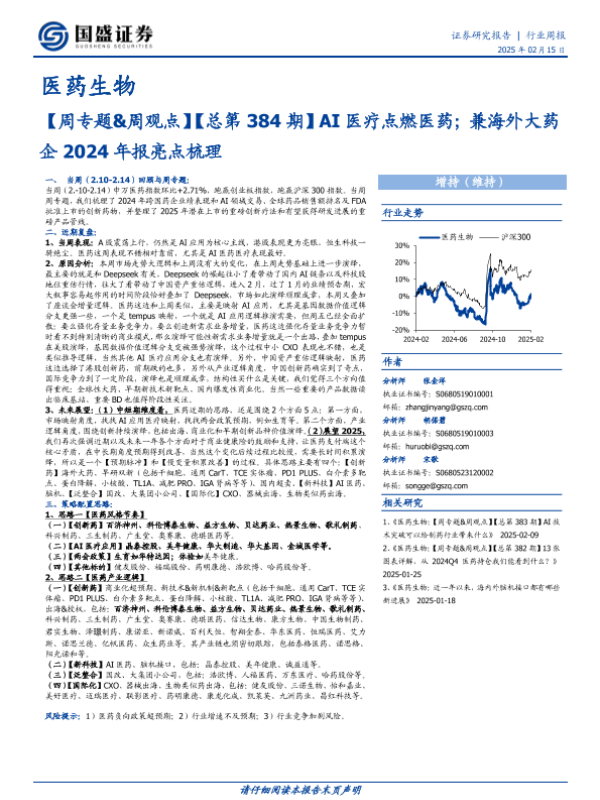 【国盛证券】【20250215】AI医疗点燃医药;兼海外大药企2024年报亮点梳理-34页 行业研究