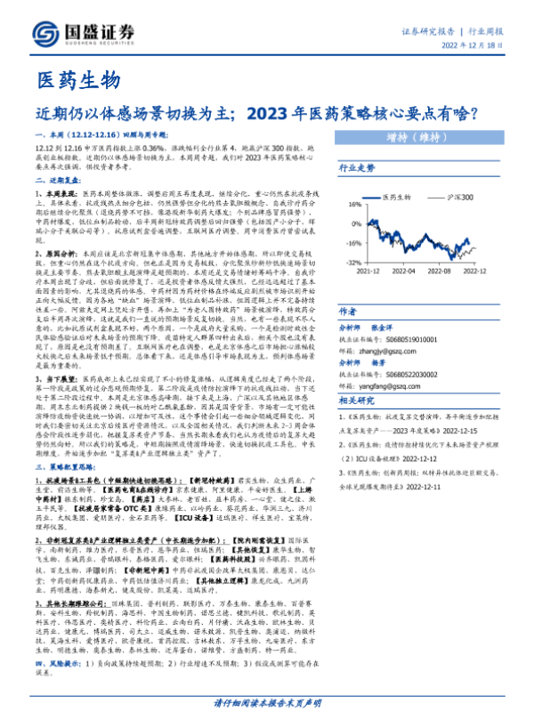 【国盛证券】【20221218】医药生物行业周报:近期仍以体感场景切换为主;2023年医药策略核心要点有啥?-27页 行业研究