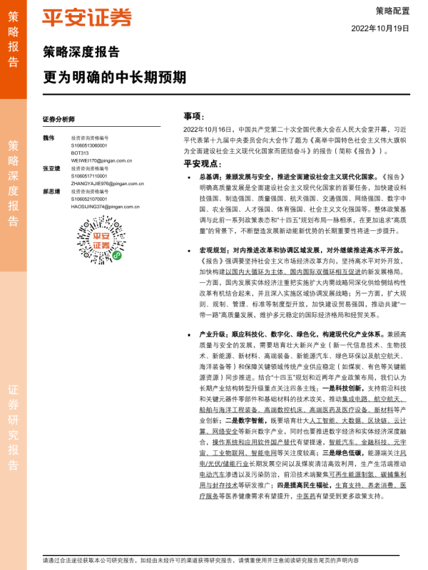 【平安证券】【20221019】策略深度报告:更为明确的中长期预期-18页 行业研究