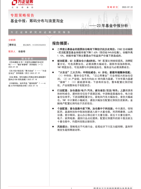 【方正证券】【20230722】23年基金中报分析:基金中报,筹码分布与浪里淘金-19页 行业研究