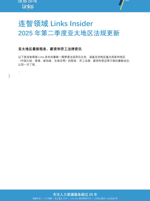 【连智领域 Links】【202504】2025第二季度亚太地区劳动法律法规更新-21页 政策文件