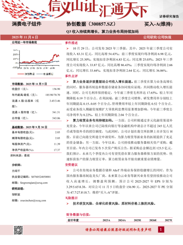 【山西证券】【202511】消费电子组件 协创数据(300857.SZ) 买入-A(维持) Q3收入持续高增长,算力业务布局持续加码-5页 证券期货研究报告