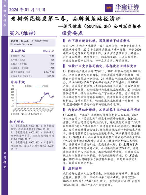 【华鑫证券】【20240111】老树新花焕发第二春,品牌筑基路径清晰—莲花健康(600186.SH)公司深度报告-44页 行业研究