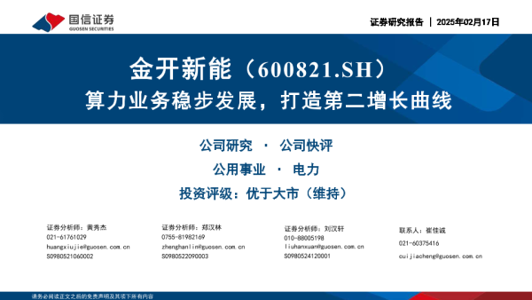 【国信证券】【20250217】金开新能(600821)算力业务稳步发展,打造第二增长曲线-13页 行业研究