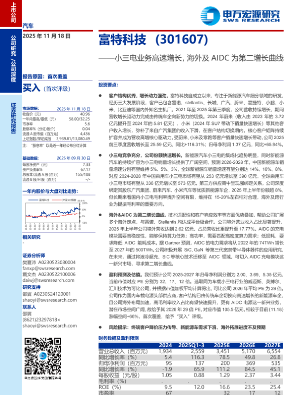 【申万宏源】【202511】富特科技(301607)——小三电业务高速增长,海外及 AIDC为第二增长曲线-25页 证券期货研究报告
