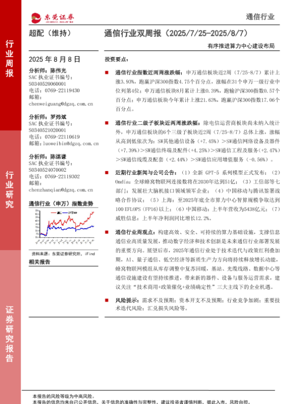 【东莞证券】【20250808】通信行业双周报:有序推进算力中心建设布局-11页 证券期货研究报告