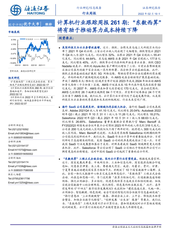 【海通证券】【20220219】计算机行业跟踪周报261期:“东数西算”将有助于推动算力成本持续下降-4页 行业研究