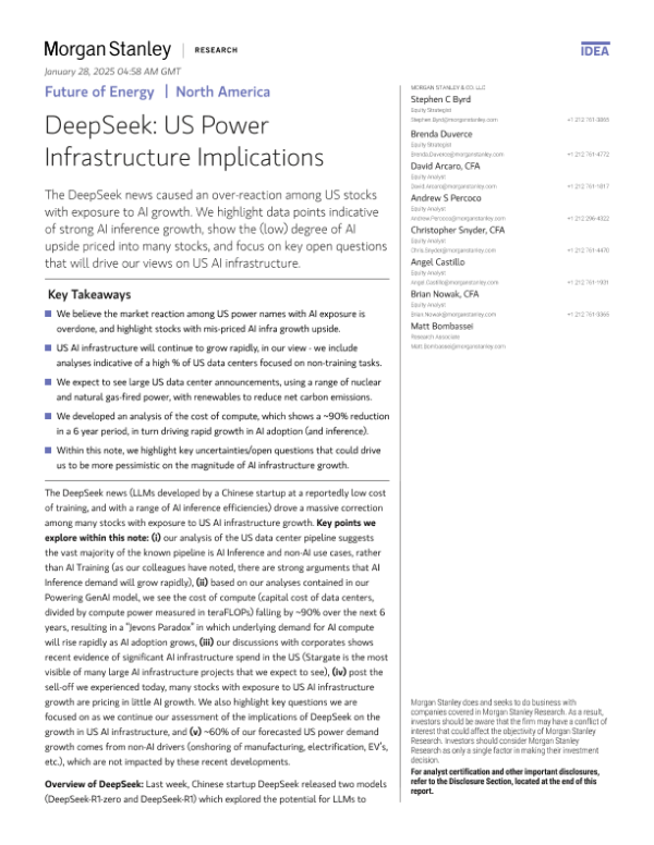 【Morgan Stanley】【2024】DeepSeek US Power Infrastructure Implications-15页 行业研究