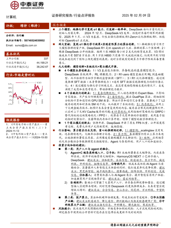 【中泰证券】【20250209】计算机行业:DeepSeek掀起算力成本革命,助推AI+Agent加速落地-19页 行业研究