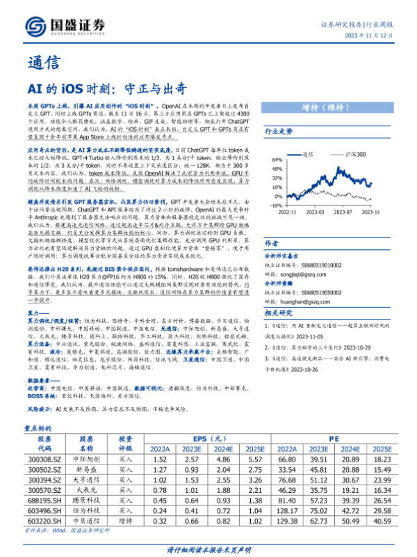 【国盛证券】【20231112】通信行业周报:AI的iOS时刻,守正与出奇-16页 行业研究