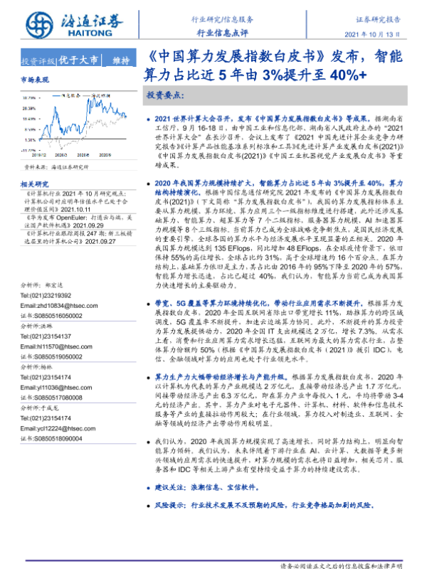【海通证券】【20211013】20211013-海通证券-信息服务行业信息点评:《中国算力发展指数白皮书》发布,智能算力占比近5年由3%提升至40%+-2页 行业研究
