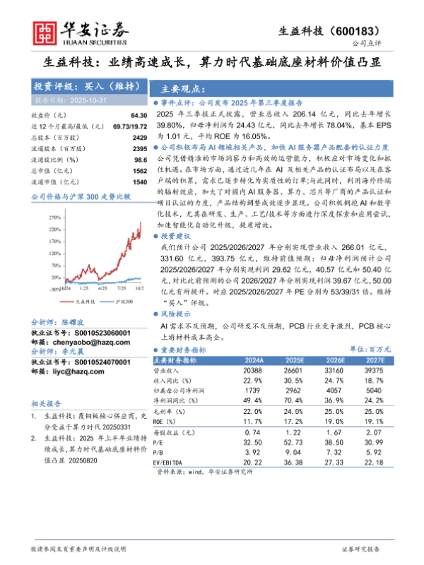 【华泰证券】【2024】生益科技:业绩高速成长,算力时代基础底座材料价值凸显-3页 证券期货研究报告