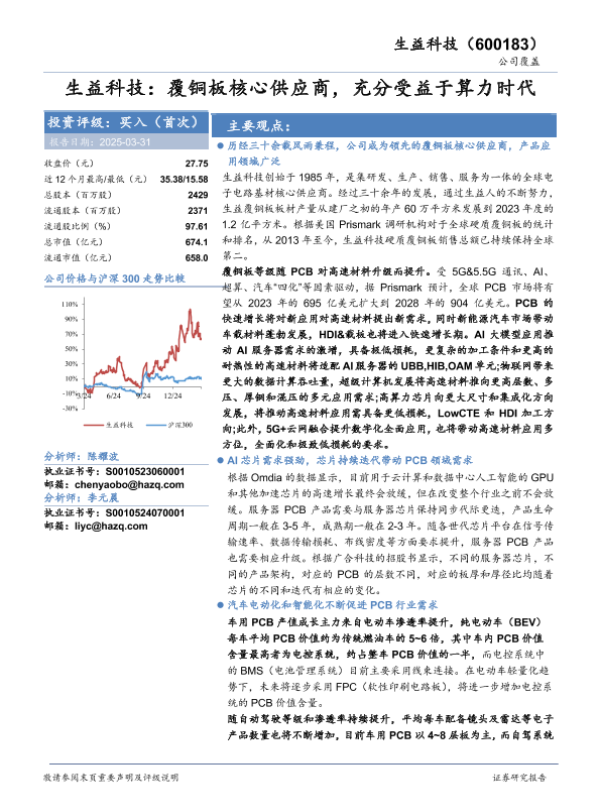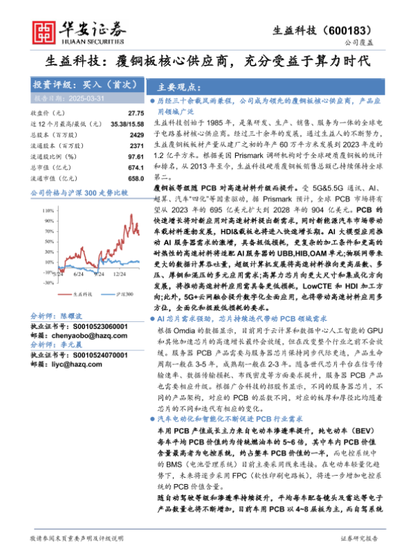 【华安证券】【20250331】生益科技(600183)覆铜板核心供应商,充分受益于算力时代-23页 公司研究