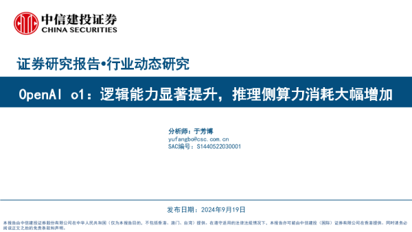 【中信建投证券】【20240919】电子行业OpenAI+o1:逻辑能力显著提升,推理侧算力消耗大幅增加-23页 行业研究