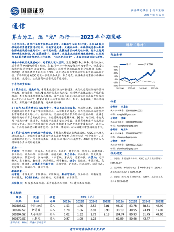 【国盛证券】【20230702】通信2023年中期策略:算力为王,逐“光”而行-19页 行业研究