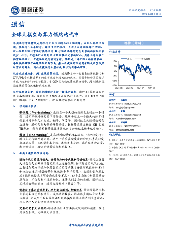 【国盛证券】【20240818】通信行业周报:全球大模型与算力悄然迭代中-19页 行业研究
